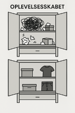 Oplevelsesskabet er et terapeutisk redskab, der hjælper med at organisere svære oplevelser og placere dem et sted i sindet, hvor de ikke længere dominerer hele det indre rum. Det handler ikke om at glemme – men om at skabe struktur og overblik, så oplevelsen ikke fortsat står og roder midt i bevidstheden.